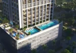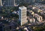 The project comprises 64 studios, 134 one-bedroom units, 84 two-bedroom residences, and 5 ground-level commercial spaces. Apartments range from 336 to 1,330 sq. ft., with completion scheduled for Q3 2027.